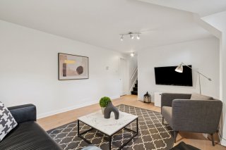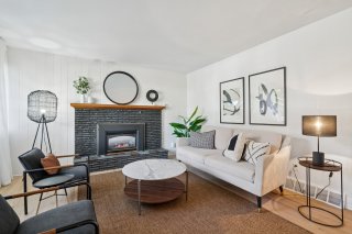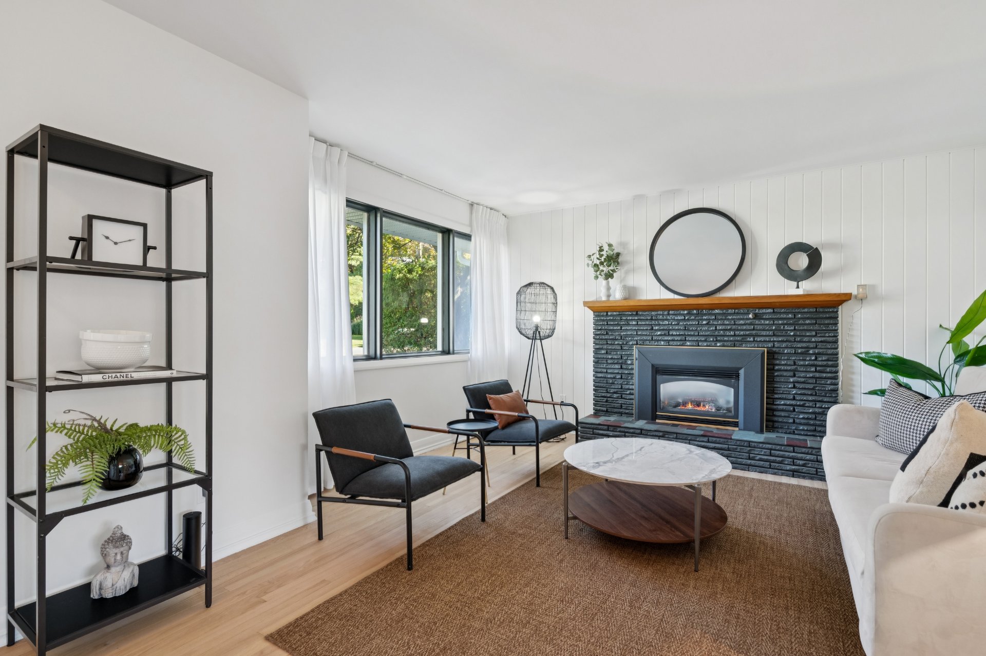 sur un espace de vie à aire ouverte baigné de lumière.