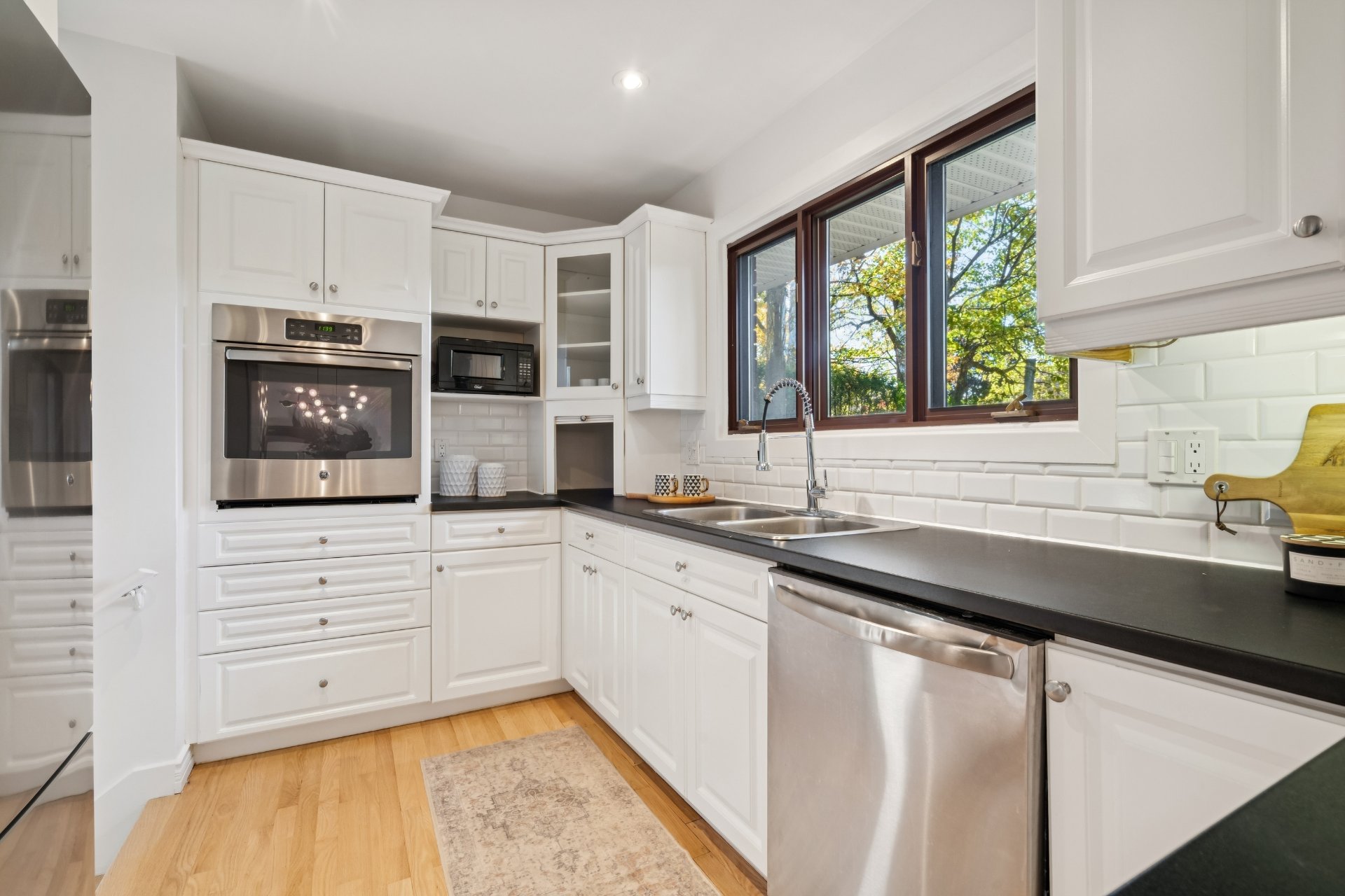 La cuisine fonctionnelle avec ses armoires blanches et
