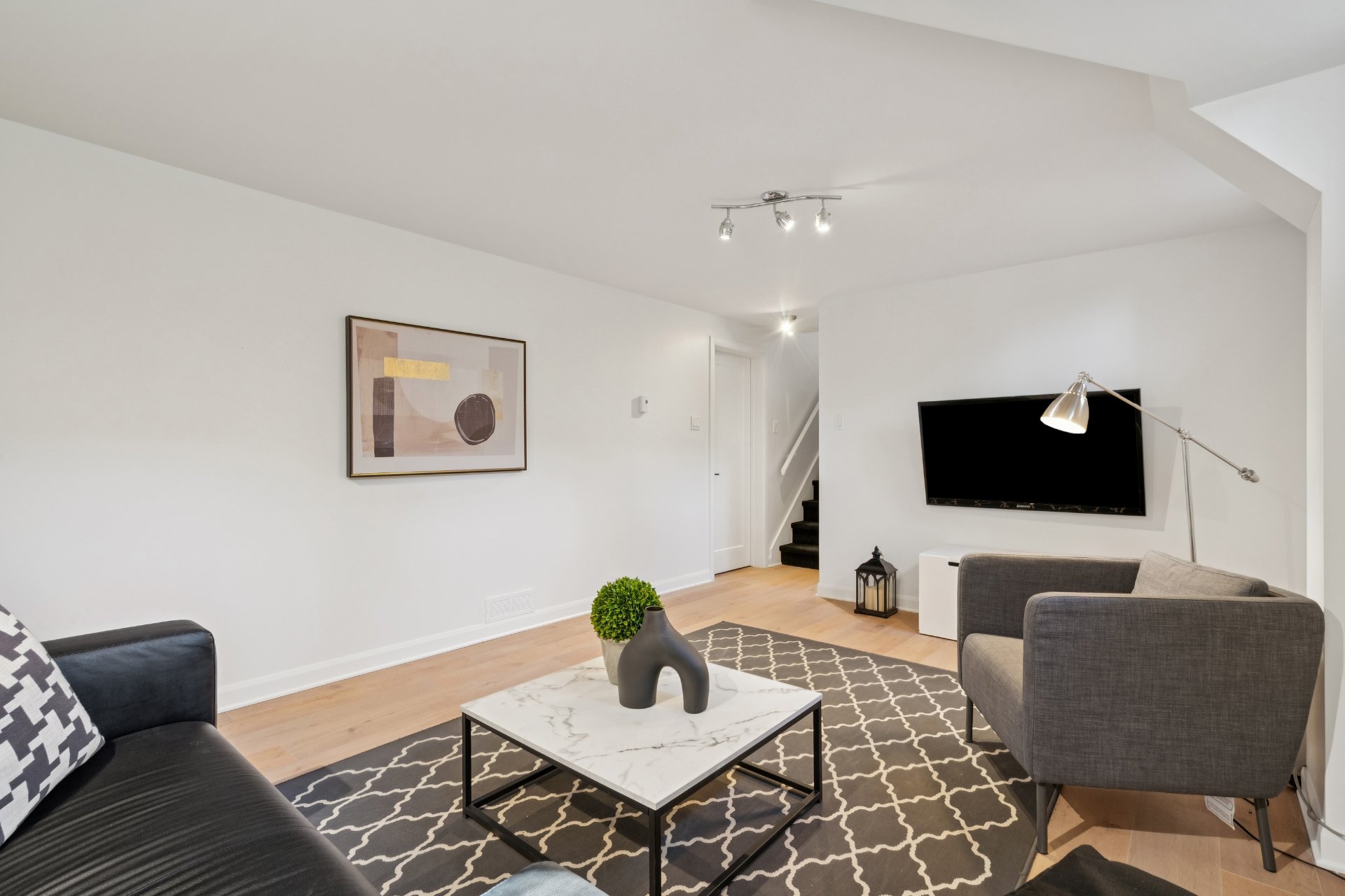 Le sous-sol entièrement aménagé offre un espace polyvalent