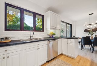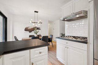 comptoirs contrastants se prolonge vers la salle à manger