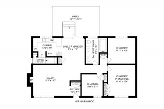 | Chambre à coucher principale | 11.10 x 13.4 P | Rez-de-chaussée | Bois |