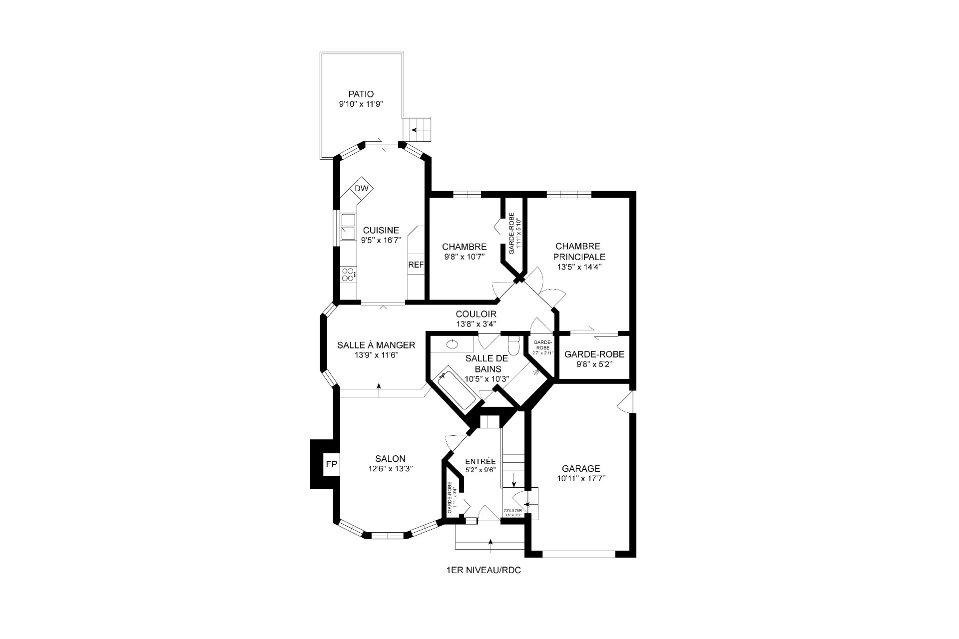 Penderie (Walk-in) 9.8 x 5.2 P Rez-de-chaussée Bois